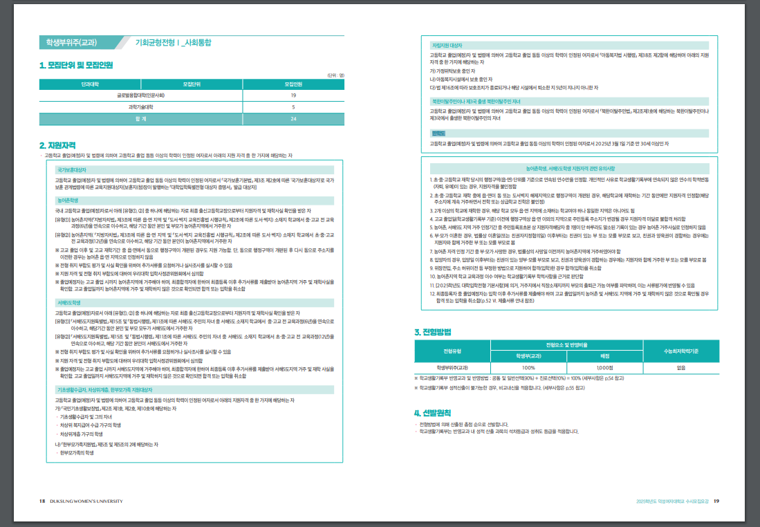 지원가능한 단과대학은 글로벌융합대학(인문사회) 19명 선발 및 과학기술대학 5명 선발로 나뉩니다.